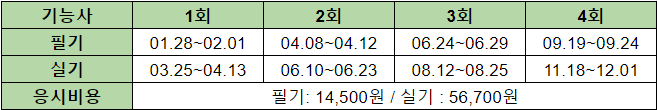 에너지관리기능사의 시험 일정은 1년에 총 4번의 필기시험과 실기시험으로 구성되어 있습니다. 응시 비용은 필기의 경우, 14,500원이며 실기는 56,700원입니다.