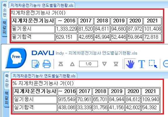 다운로드 후 파일을 열면 응시자와 합격자 인원을 파악할 수 있습니다. (합격률 = 합격자 / 응시자)