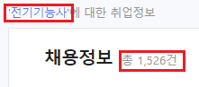 제일 선호하는 자격증답게 1,500건이 넘는 채용공고가 진행중입니다. 모든 곳에 쓰이기 때문에 여견만 되신다면 꼭 도전해보시길 추천드립니다.