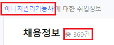 법정 안전관리자로 자격증 소지자를 선임해야 하기 때문에 취업에 아주 유리하며 총 369건의 채용정보를 확인할 수 있습니다.