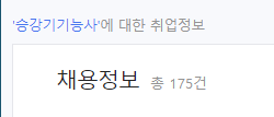 채용현황은 총 175건으로 타 자격증에 비해 많은 편은 아니라고 할 수 있습니다.
