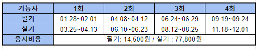 1년에 총 4번의 필기와 실기 일정이 있으며 총 응시비용은 92,300원입니다.
