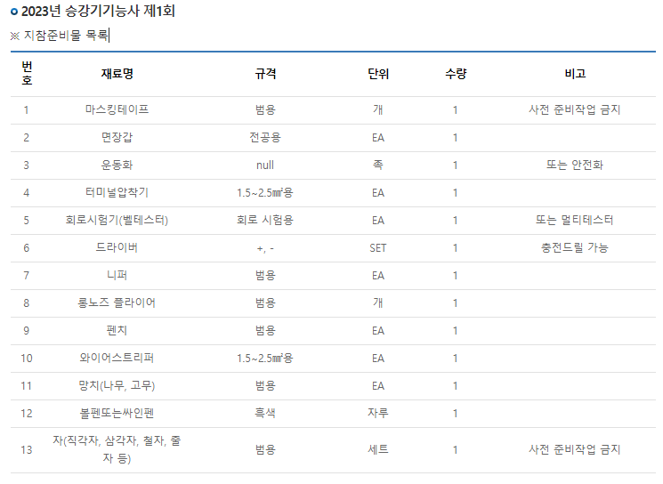 실기 준비물