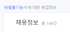 널리 쓰이는 자격증으로 비교적 많은 취업 기회가 있습니다. 채용현황은 총 149건으로 구인중입니다. 석유화학, 안전관리자, 시설관리 등 인기 직종이 모집중입니다.